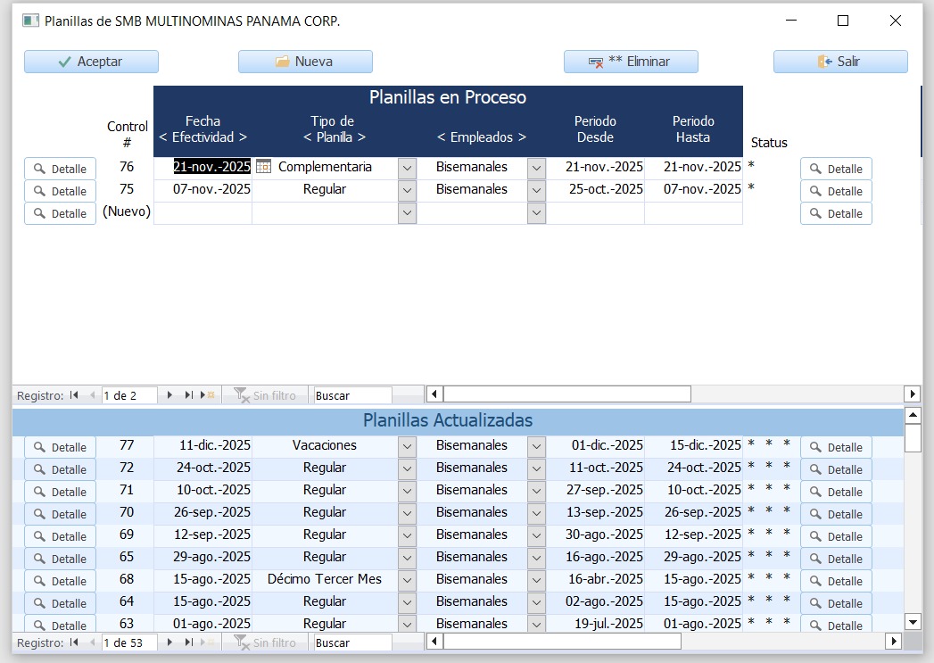 1.1 Automatización total de las planillas regulares (Semanales, bisemanales, quincenales, mensuales)