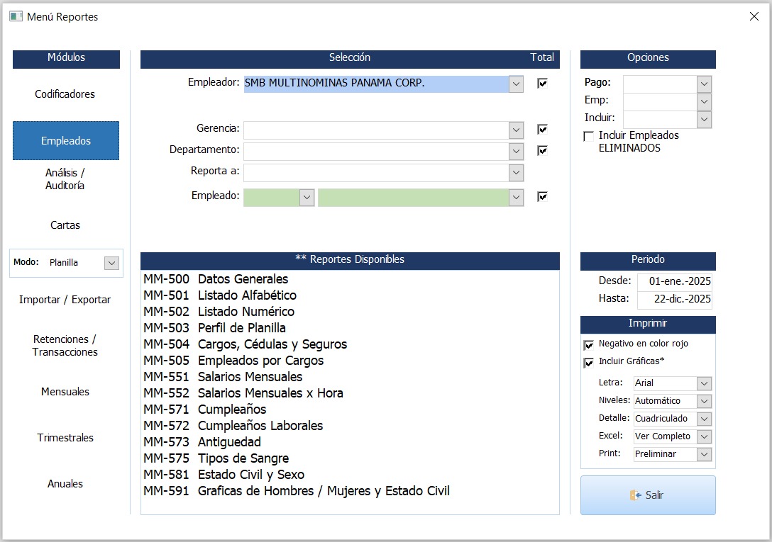 1.12 Más de 150 reportes de la base de datos de empleados para Recursos Humanos y Planillas